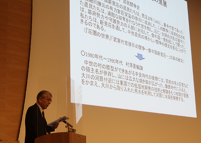 講演「荘園村落遺跡詳細分布調査の期間に生まれた105のレガシー」をする。このレガシーとは①国指定、県指定あるいは選定の文化財・史跡など、②ユネスコほかの世界遺産、③関連する県市町村の調査報告書(但し、概報は除く)、④別府大学刊行の『豊後国荘園公領資料集成』を指す。