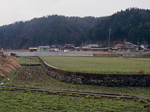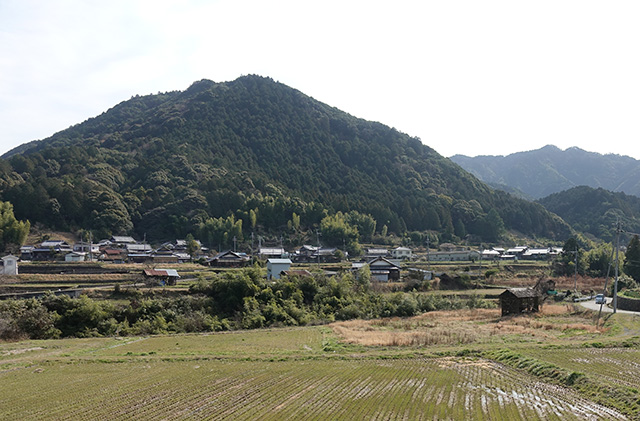 重要文化的景観「日根荘大木の農村景観」。2021年3月7日撮影。6月には大木小学校の生徒によって田植えが行われる。九条家領和泉国日根荘入山田村。