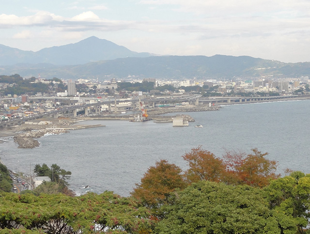 治承4年(1180)8月に源頼朝が伊豆で旗揚げした後、相模国に入って最初の戦いを行った石橋山の古戦場から相模灘を眺望。2010年11月21日撮影。