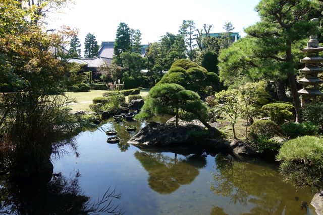 題経寺の庭園。2023年10月13日撮影。この地区は「葛飾柴又の文化的景観」として2018年に文化庁管轄の重要文化的景観に選定された。