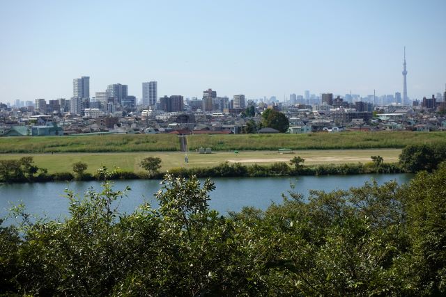 千葉県市川市国府台から見た江戸川と武蔵国。2023年10月13日撮影。治承4年(1180)8月源頼朝は伊豆国で蜂起。