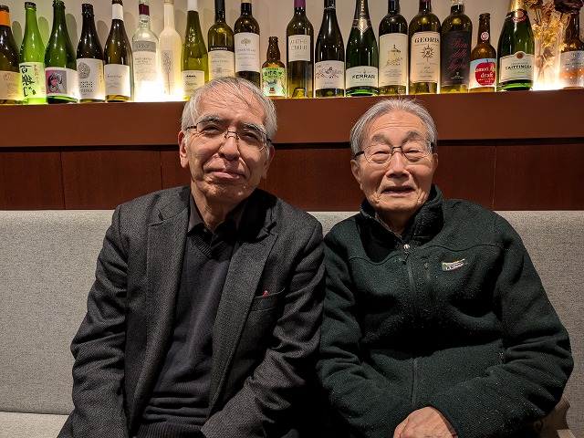 写真は二次会での大山氏と海老澤、烏丸通綾小路下るビアバル&バーLitにて。